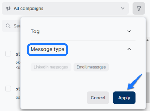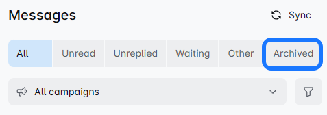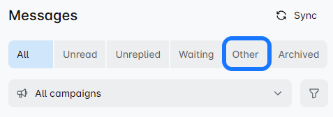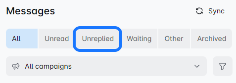 Una volta collegato il tuo profilo LinkedIn al Sales Engagement Tool, questo filtro mostra i tuoi messaggi non basati su campagne. ❗ I messaggi inviati prima di collegare il tuo account non appariranno qui.