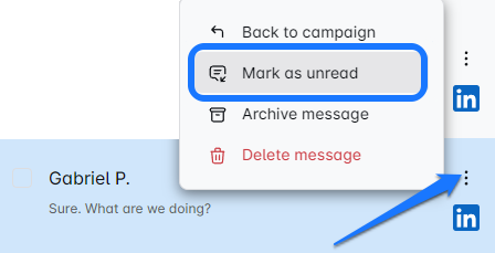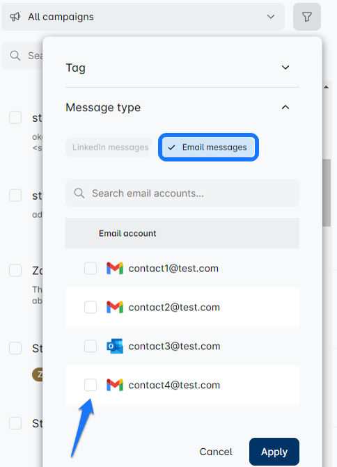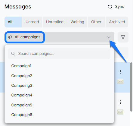 Quando utilizzi il Filtro Campagna, se hai conversato con un lead attraverso diversi canali come LinkedIn, Sales Navigator o Email, la Smart Inbox ti consente di passare facilmente tra questi canali direttamente all'interno della casella di posta. È come avere un telecomando per le tue conversazioni!