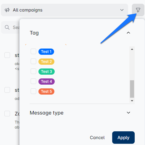 Questa opzione ti consente di vedere i messaggi associati a campagne specifiche.