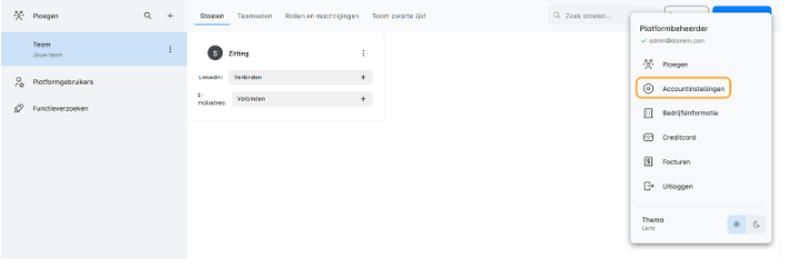 Om te beginnen, ga naar je teamdashboard. Klik op je accountpictogram en navigeer vervolgens naar Accountinstellingen om de InboxFlare e-mailopwarmingsoptie te vinden. Je kunt e-mailopwarming alleen activeren als je een teameigenaar van dit specifieke team bent.