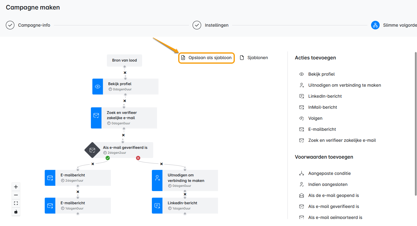 Opslaan als sjabloon: Klik hierop als je je campagne wilt omzetten in een herbruikbaar sjabloon. Het is als het bewaren van je meesterwerk zodat je het keer op keer kunt gebruiken! 🎨