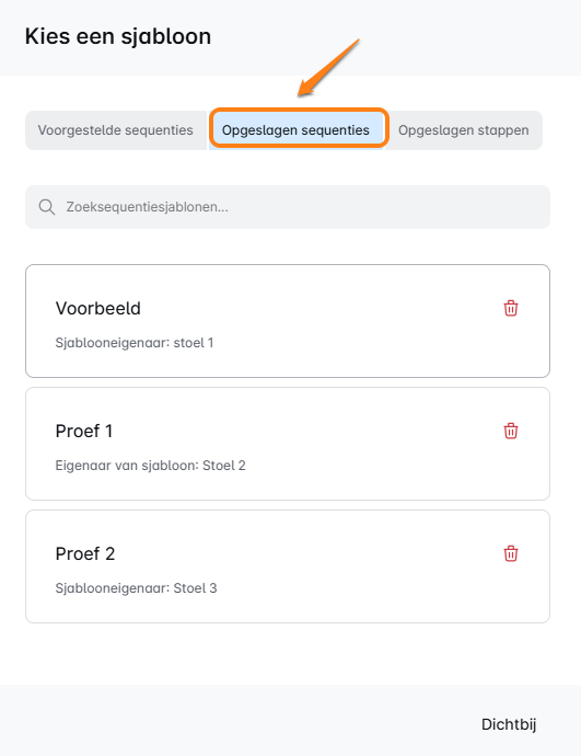 Na het opslaan van je campagne als sjabloon, staat het daar, klaar en wachtend op je in al je accounts. Klik gewoon op de aangewezen knop (je ziet het duidelijk gemarkeerd) om je opgeslagen sjabloon op te roepen. Het is als het hebben van een geheim wapen in je Sales Engagement Tool toolkit! 🔧