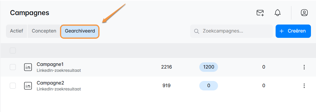 Schakel eenvoudig over naar de weergave 'Gearchiveerde campagnes'. Je ziet nu al je netjes opgeborgen campagnes.