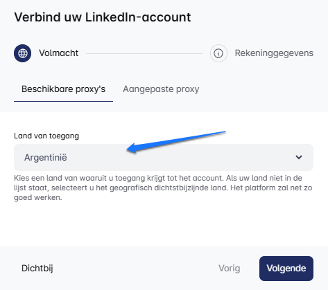- Kies bij het verbinden van LinkedIn een proxylocatie die overeenkomt met waar je normaal LinkedIn opent. Dit houdt alles soepel en consistent.