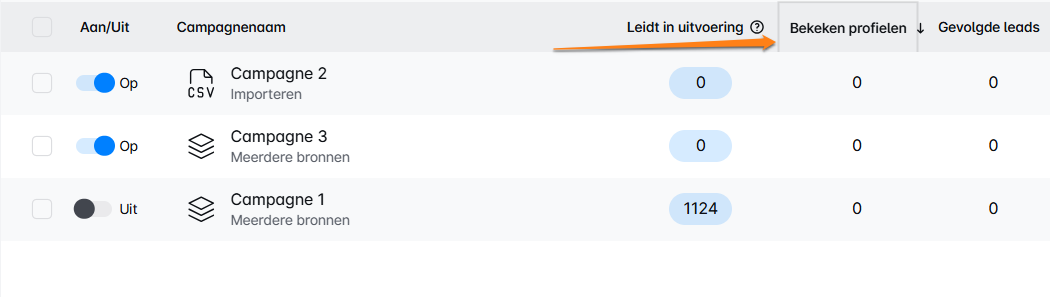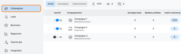 Begin met inloggen op je Sales Engagement Tool-account en ga naar het Campagne Dashboard.
