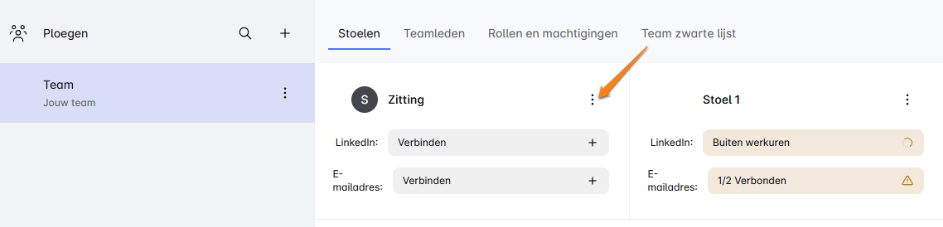 Ga eerst naar je Team dashboard. Zoek daar naar het menu met de drie puntjes (je vindt het direct naast je stoelnaam). 👀