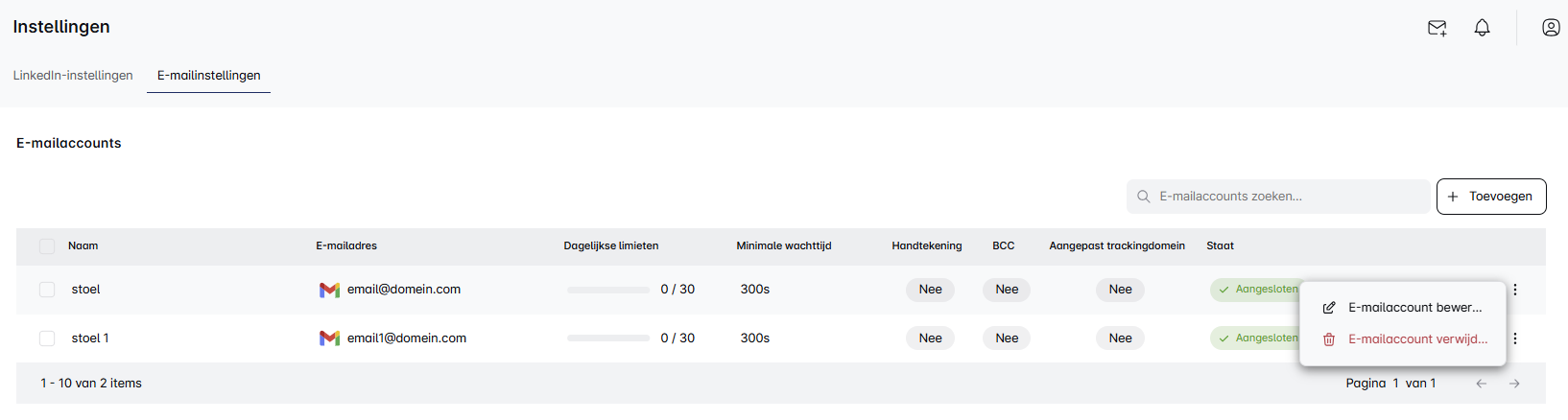 💡 Pro tip: Als je e-mailaccounts nog niet zijn opgewarmd, is het het beste om ze voorlopig uit de campagne te verwijderen en te wachten tot ze volledig klaar zijn voor outreach.