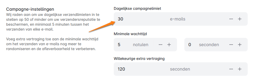 We raden aan om je dagelijkse verzendlimieten in te stellen op 50 of minder om je verzendreputatie te beschermen.