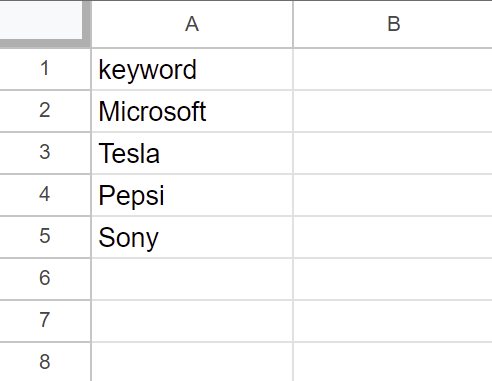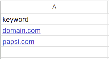 Esta é a informação que seu arquivo CSV deve conter. Neste arquivo, você precisa ter apenas uma coluna com uma 'palavra-chave' escrita no título. Todos os valores devem estar nesta coluna.