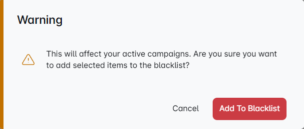 Isso aparecerá se você tiver campanhas ativas e o Sales Engagement Tool também adicionará à lista negra os leads que estão nessas campanhas. Portanto, estamos apenas avisando para garantir que você não cometa um erro.
