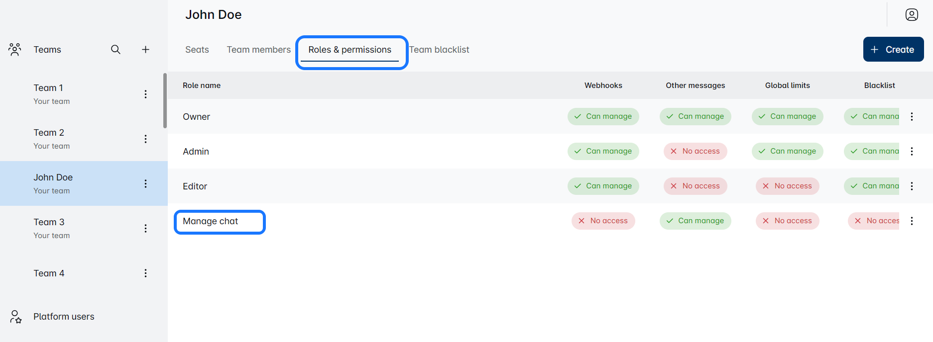 GĂ„ till 'Roller & Behörigheter', tryck pĂ„ 'Skapa' och vĂ€lj behörigheter som kampanjhantering, meddelandehantering eller svartlistning. Du kan till och med stĂ€lla in roller för endast visning för observationsĂ„tkomst. Med Anpassade Roller kan du sĂ€kerstĂ€lla att varje teammedlem har rĂ€tt verktyg och nivĂ„ av Ă„tkomst, vilket förbĂ€ttrar effektivitet och organisation. Njut av flexibiliteten att forma teamroller efter dina exakta specifikationer!âïžđ