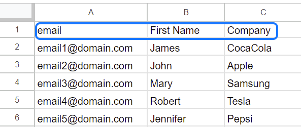 - CSV'yi potansiyel müşteri kaynağınız olarak kullanarak e-posta göndermek için bir temel sütuna ihtiyacınız var: ‘email’ (küçük harfle) adında bir sütun.