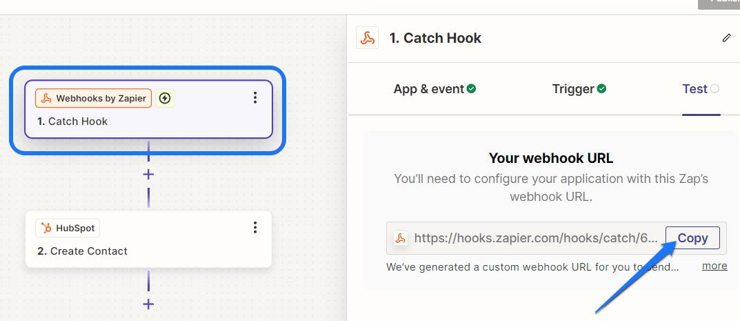 - 點擊“繼續”並測試整合步驟,以確保數據正確發送到 HubSpot。