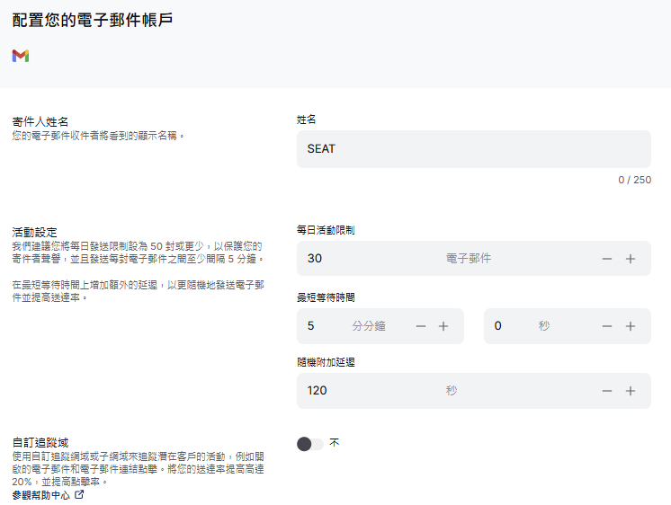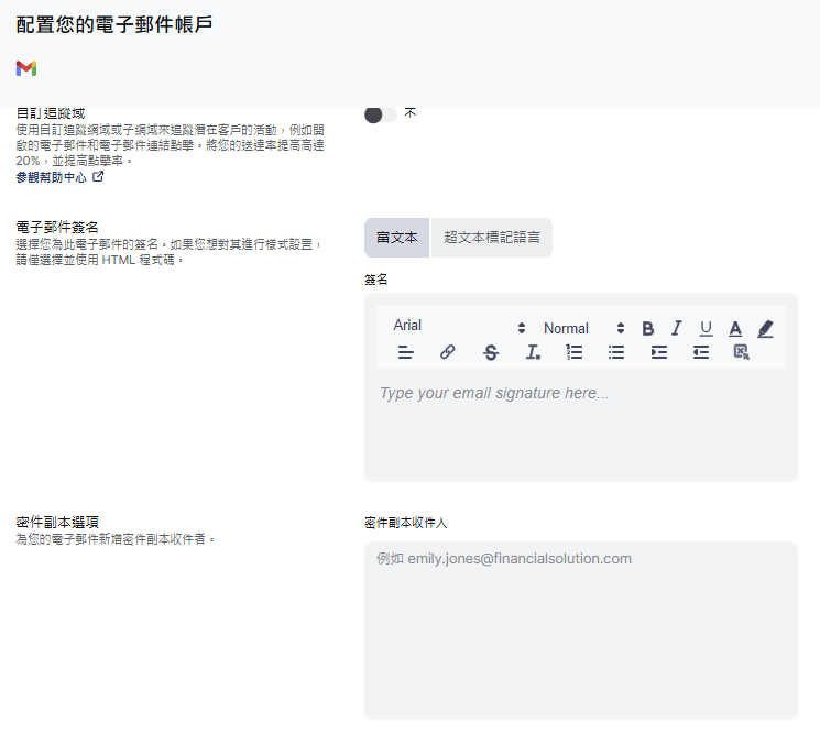 在這裡,您可以更改發件人的姓名,調整活動設置,設置自定義跟蹤域,更新您的簽名,甚至添加密件抄送收件人。🖊️